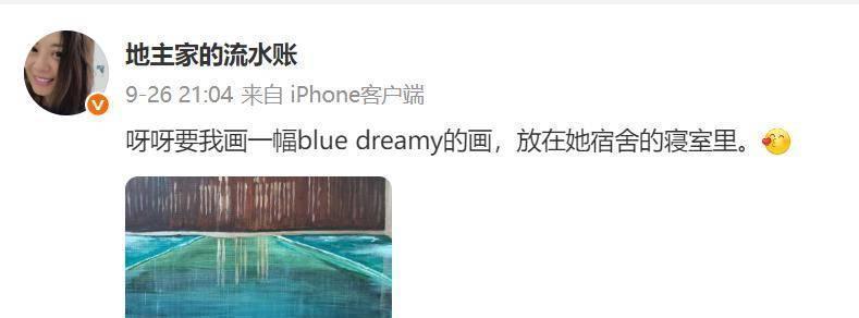 9月26号,她发文表示自己画了一幅画,打算放到女儿宿舍中。
